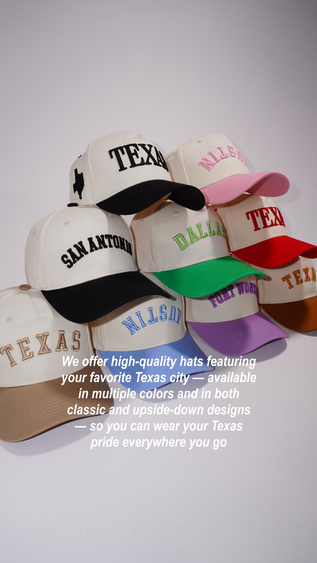 At TasteTexas, we celebrate the spirit of the Lone Star State through both our products and our passion for Texas culture. We offer high-quality hats featuring your favorite Texas city — available in multiple colors and in both classic and upside-down designs — so you can wear your Texas pride everywhere you go